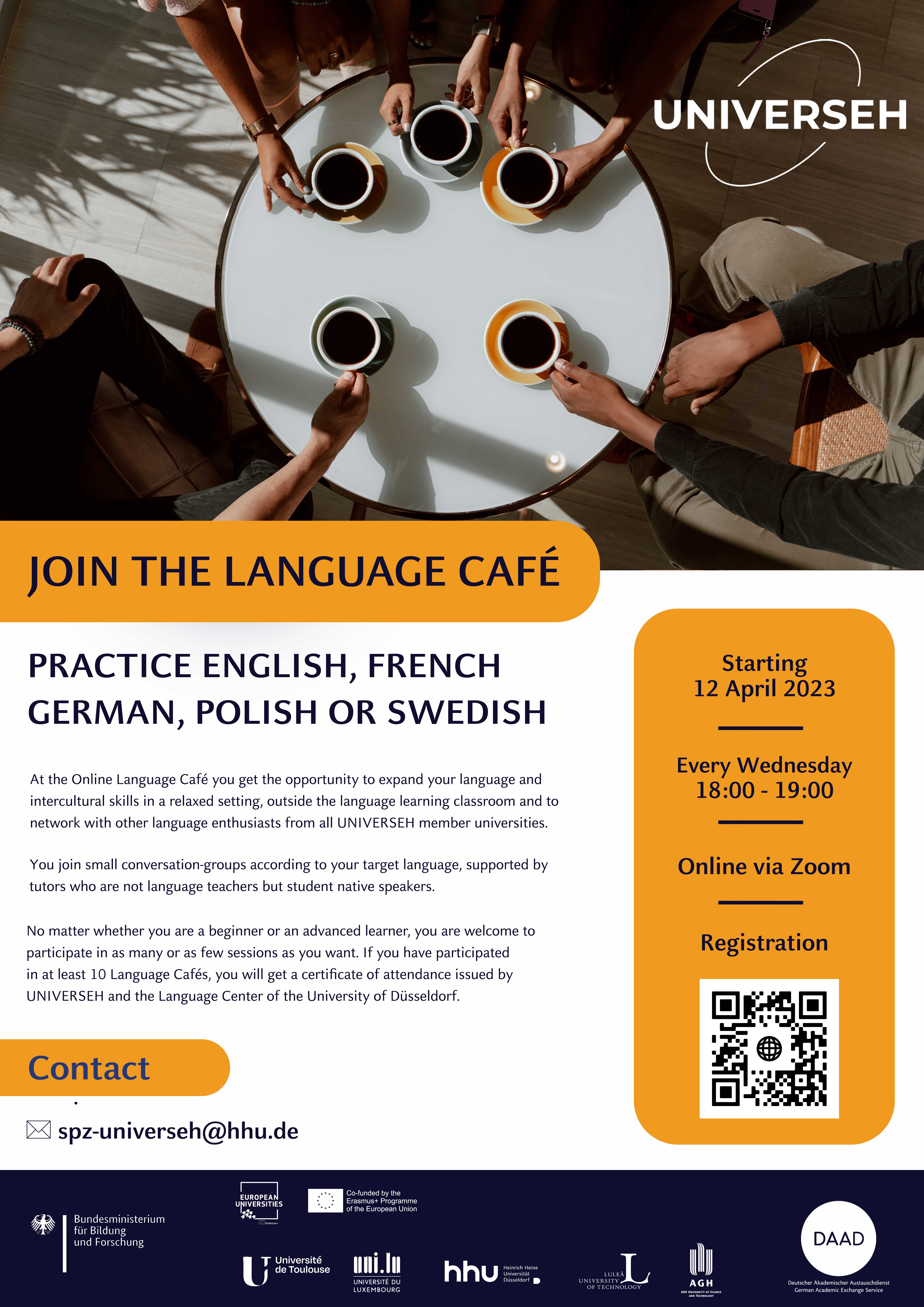 L'Université Heinrich Heine Düsseldorf, partenaire de l'Université Fédérale de Toulouse, propose des ateliers de conversation en allemand, français, anglais, polonais et suédois animés par des étudiant.e.s - locuteurs/trices natif/ves de ces langues ! Vous trouverez les informations détaillées dans le flyer ci-joint (à gauche).