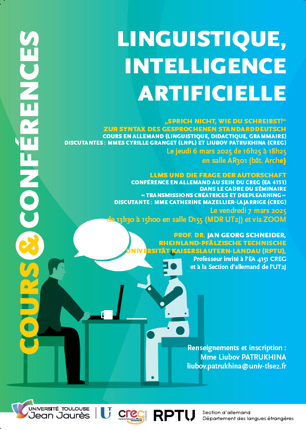 Programme pour le séjour de Prof. Dr. Jan Georg SCHNEIDER, professeur invité au CREG et à la Section d’Allemand (UT2J) du 3 au 16 mars 2025. Référente pour la venue de M. Schneider : Liubov Patrukhina